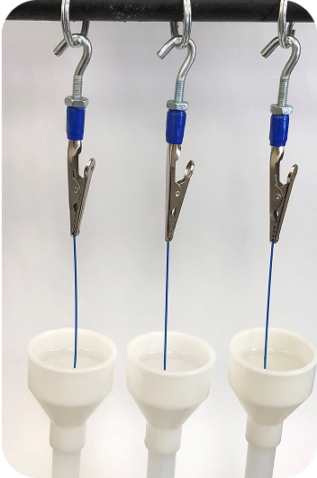 The electrospinning technique utilizes an applied current to “draw” long, thin threads from a charged polymer solution