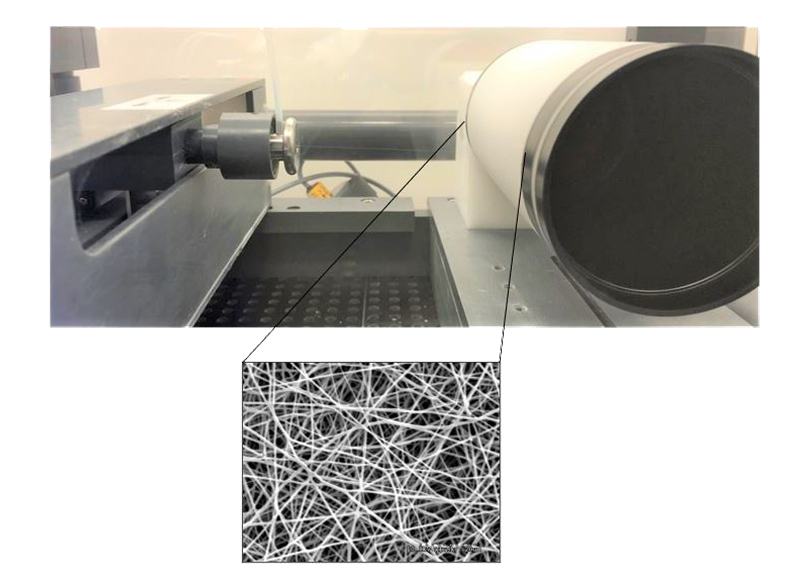Electrospinning is a manufacturing technique that produces polymer fibers for tissue engineering and membrane production. ISurTec has in-house electrospinning apparatus that fabricate nano– to microfibrillar membranes and scaffolds. We develop aligned and randomly oriented, non-woven electrospun membranes for research including drug development scaffolds and photo-reactive nanofibers.