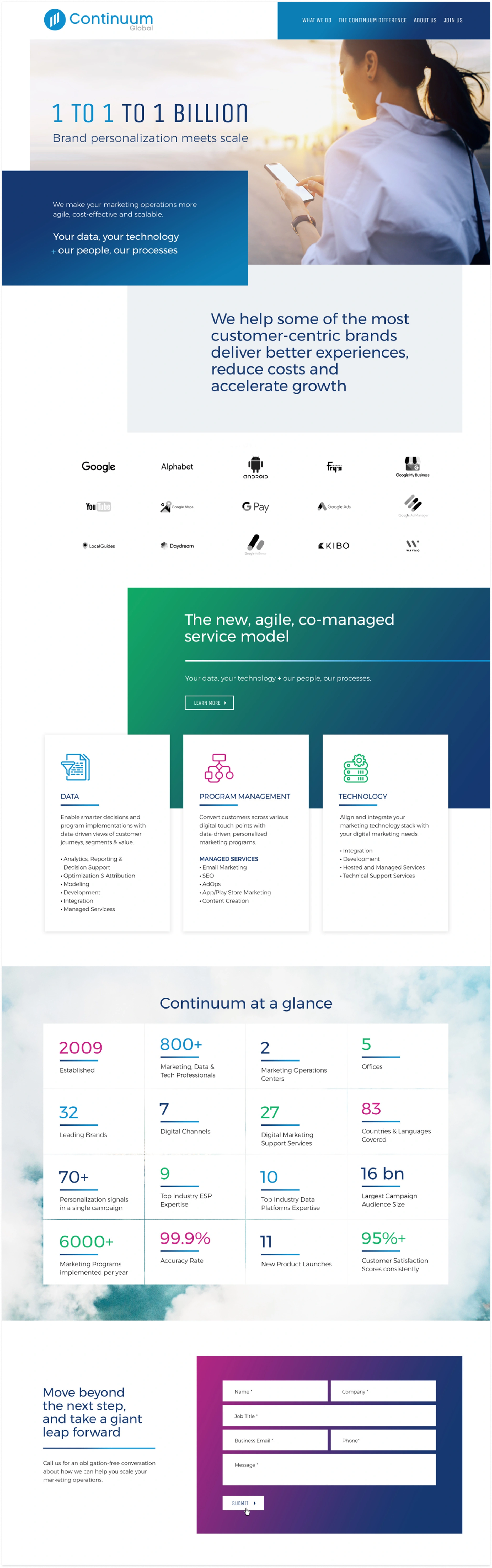Continuum Global Solutions provides global customer care and business process outsourcing services. Partnering with DRZP, we supported the design of the website and developed custom animations in collaboration with the client’s internal team.