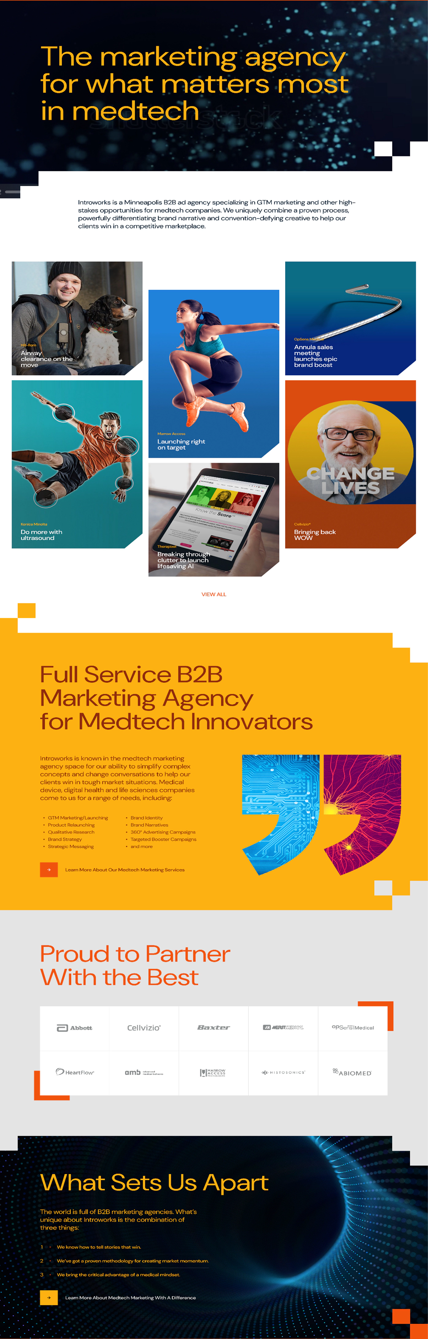 Introworks is a leading medtech marketing agency and a long-term partner of ours. We collaborated on the redesign of their website, handling information architecture, design, and custom WordPress development. The site was built with a flexible system of modular blocks to support easy content updates.