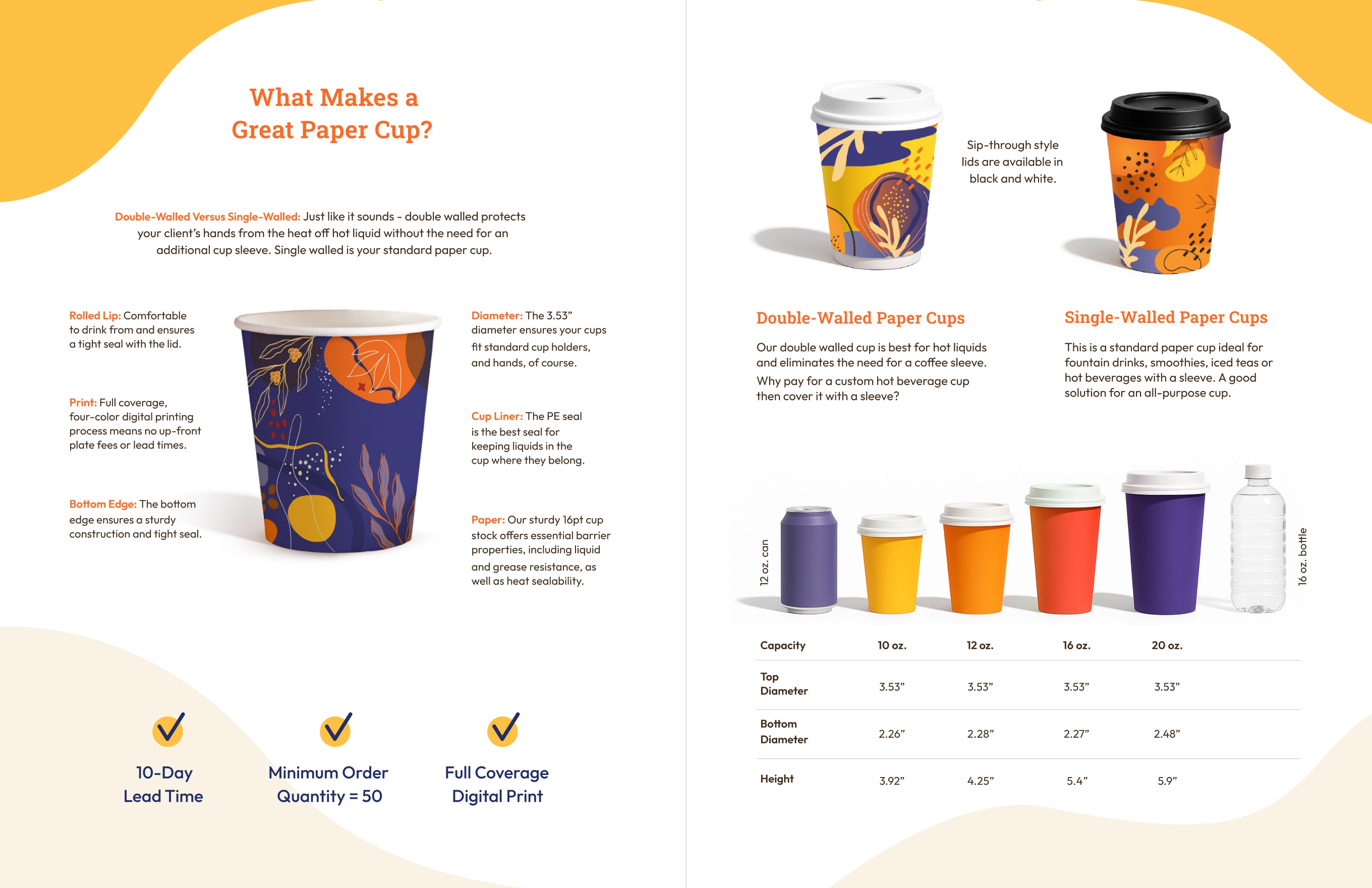 Brand identity and styles, website design, tradeshow booth design, print ads, custom cups, product catalog