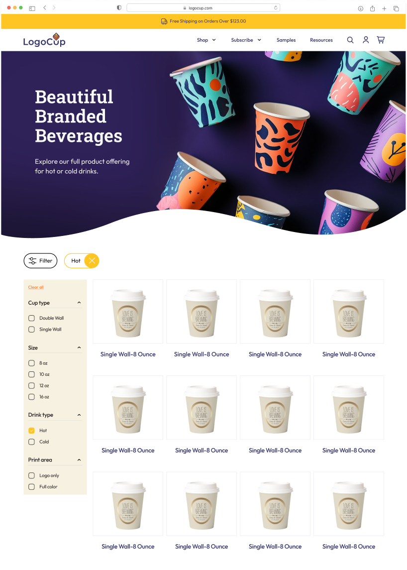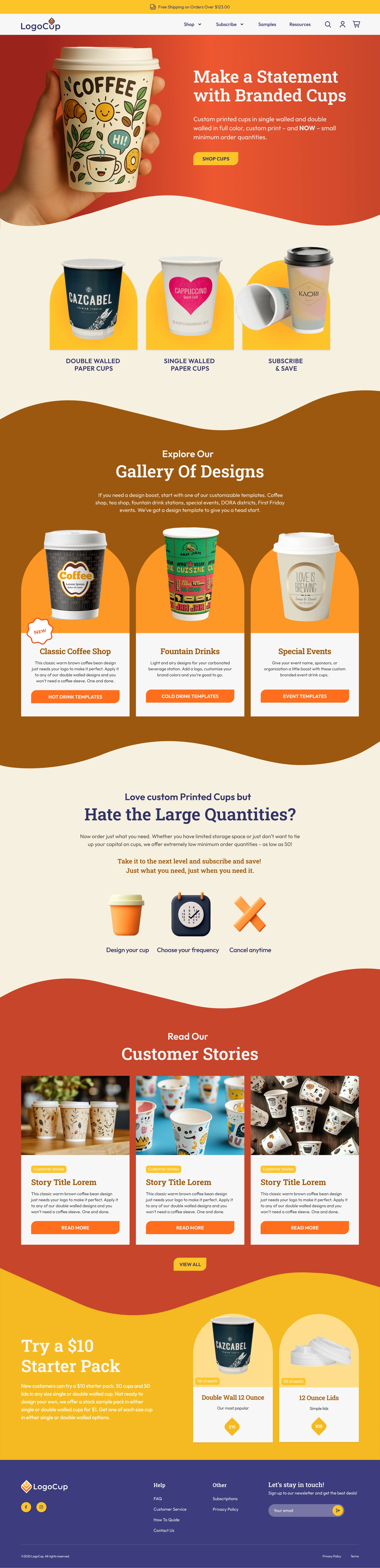 LogoCup specializes in custom-branded drinkware for events and large-scale promotions. Partnering with Think Marketability, we developed the logo and visual brand system and designed the website. Our work extended across key brand touchpoints, including the style guide, trade show booth, print ads, product catalog, and custom cup graphics.