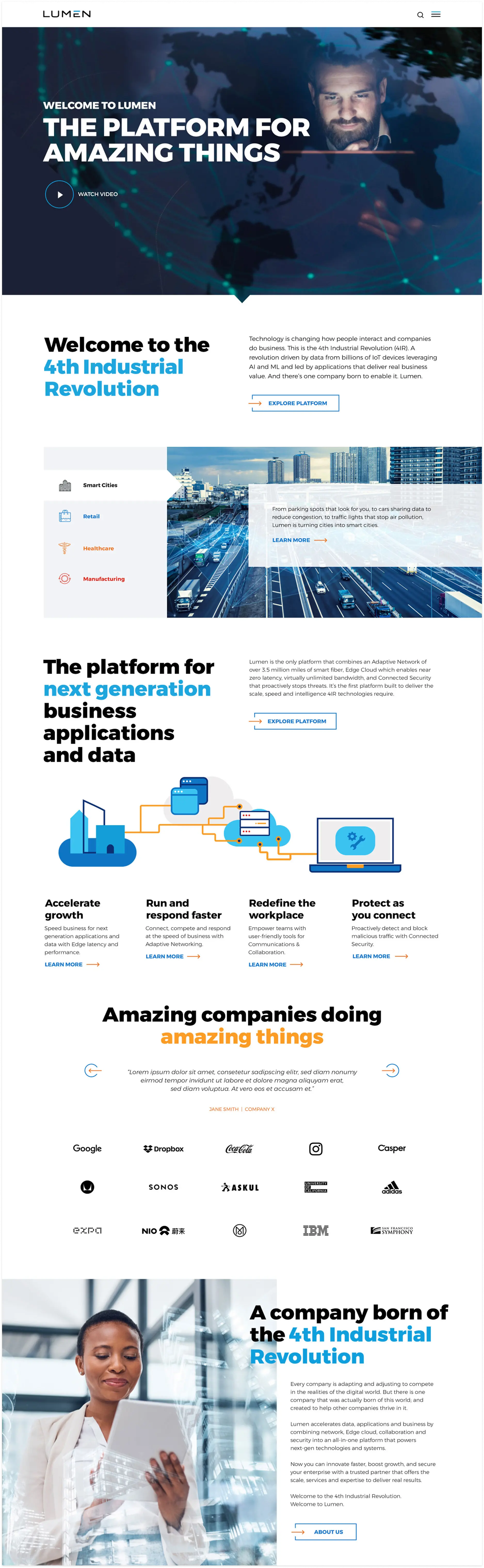 Lumen Technologies delivers enterprise networking and infrastructure solutions worldwide. Working with DRZP, we supported the design of key website templates to help extend the brand across B2B communications following the rebrand. We also produced a large volume of animated banners and social media assets.