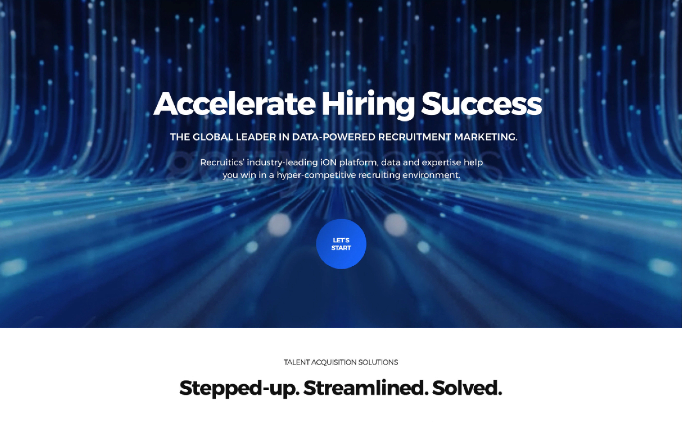 Recruitics is a data-driven talent marketing platform that helps companies optimize hiring through analytics and media solutions. Partnering with Introworks, we handled information architecture, wireframing, and website design.