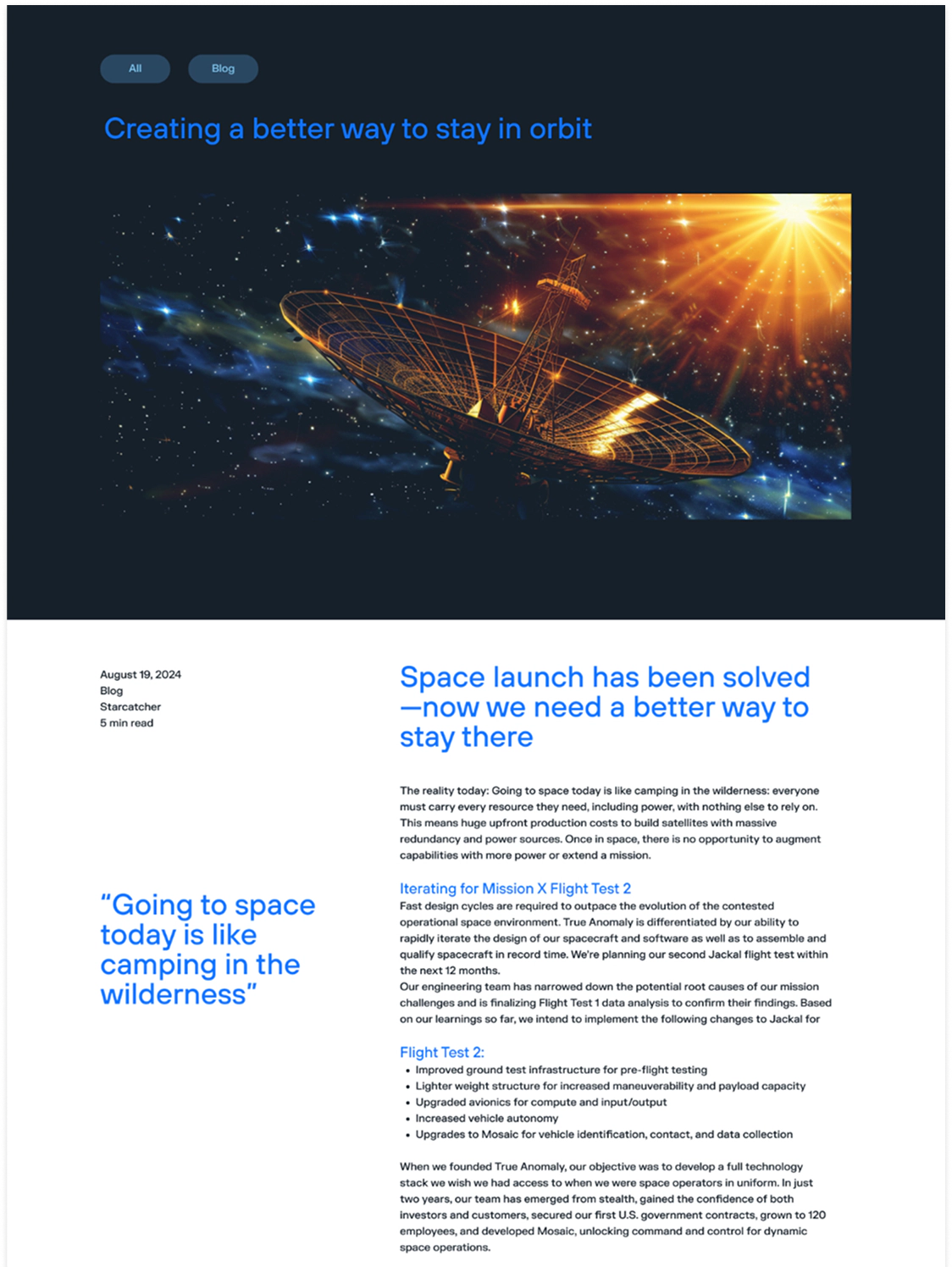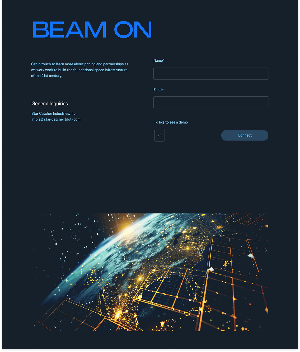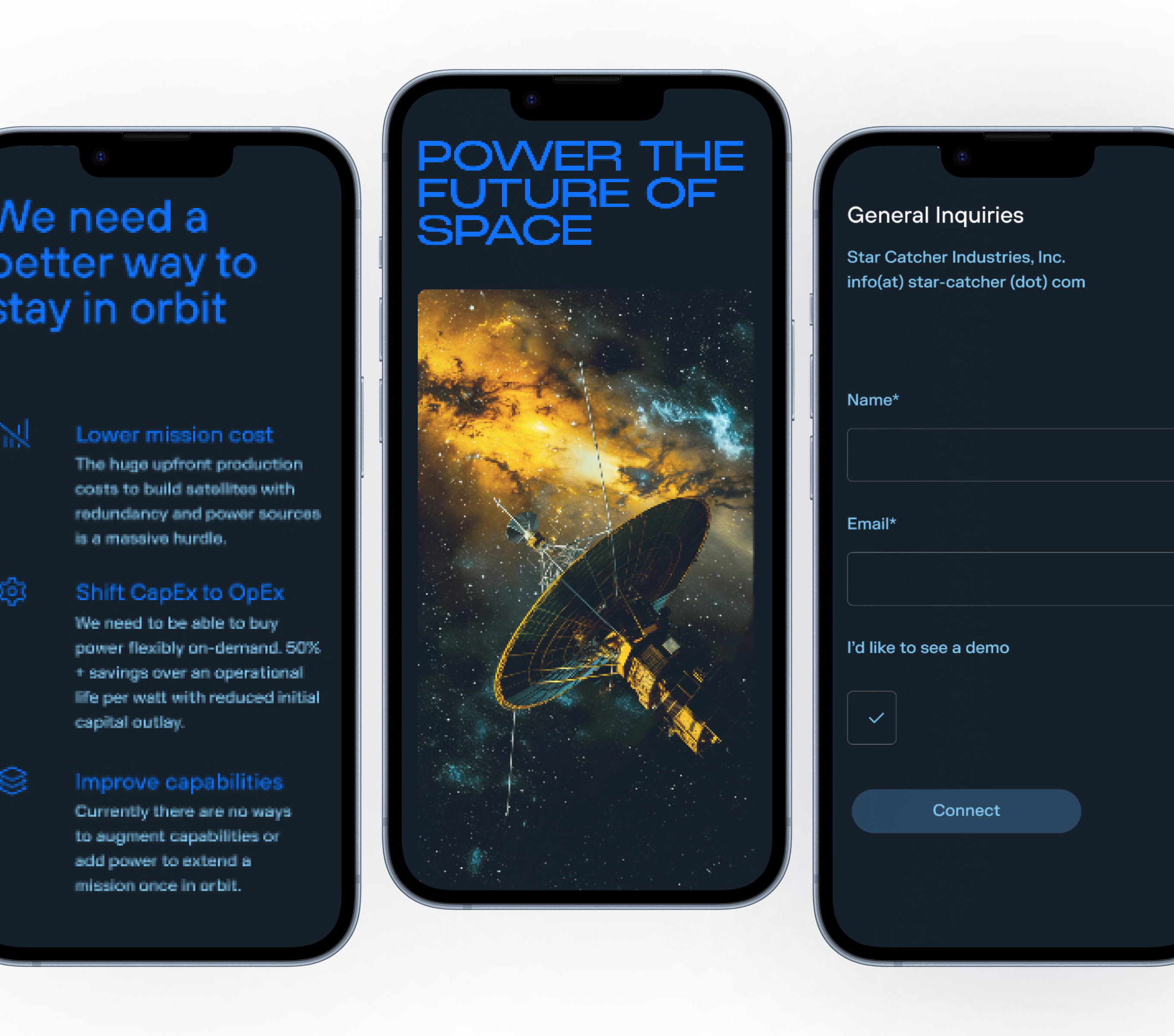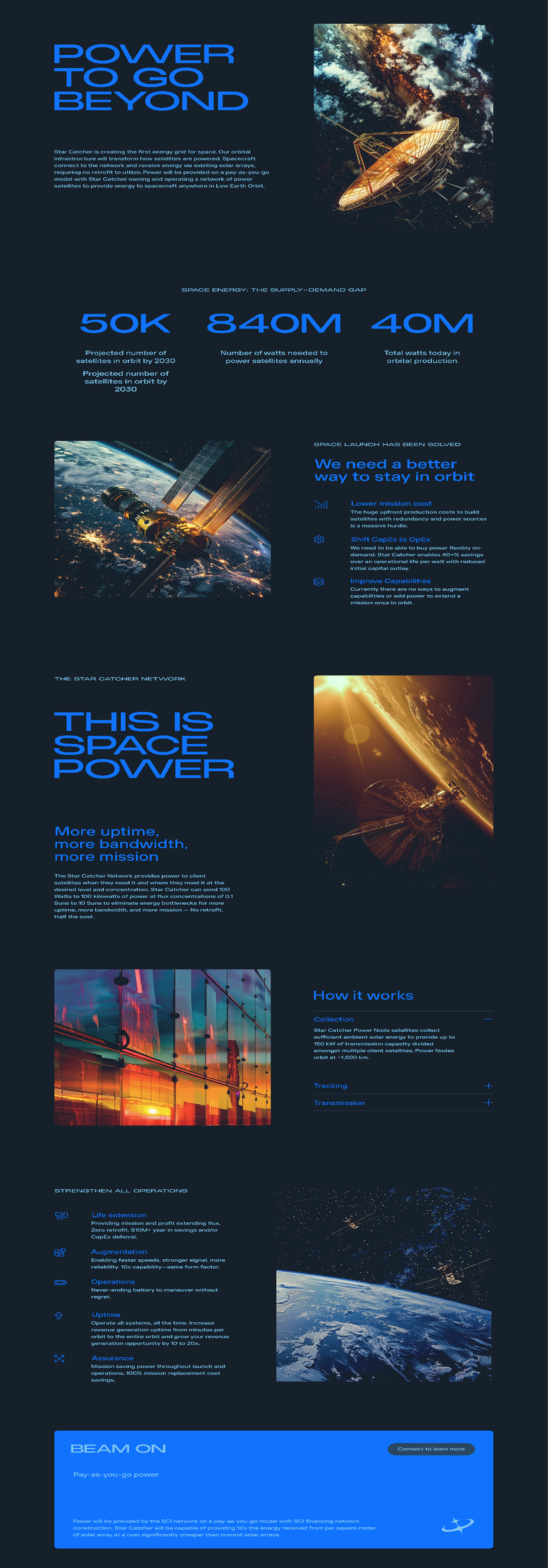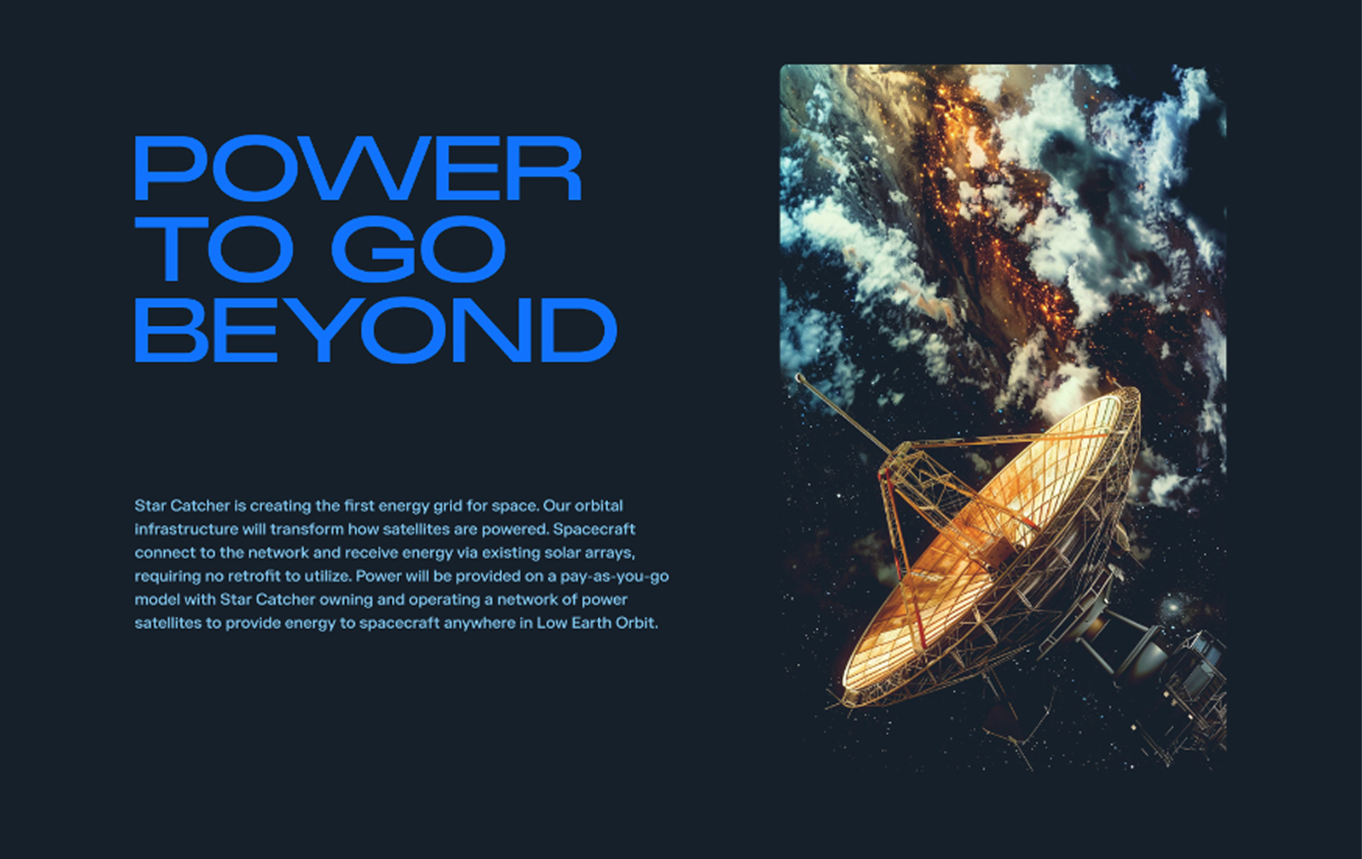 Star Catcher is developing a space-based power network that uses optical power beaming to deliver energy directly to satellites—scaling available power without hardware modifications. Partnering with Day & Age, we handled custom WordPress development, building a flexible system of reusable modules to support easy content updates.