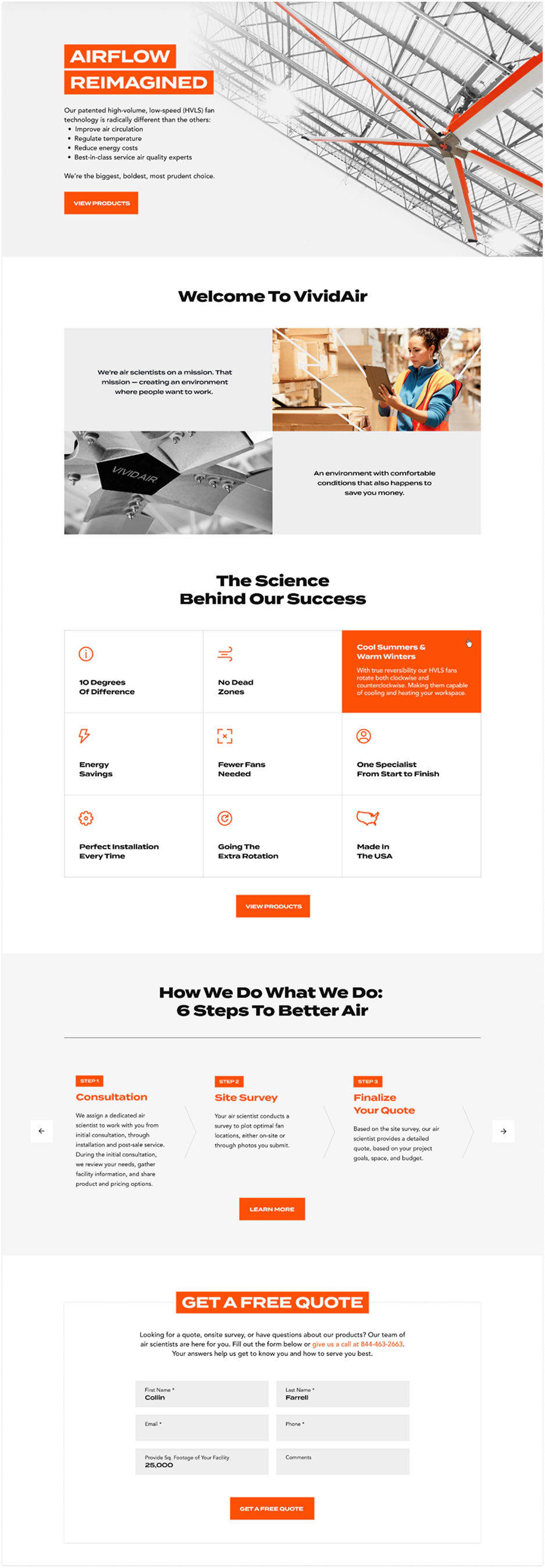 VividAir offers patented HVLS fan technology that improves air circulation, regulates temperature, and drives energy efficiency. In collaboration with Solve, we handled the design and development of the website.